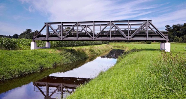 Brug „Laßnitz“ van Hans Schabus in Ohne: Een brug uit Oostenrijk, die vroeger over de rivier Laßnitz liep, creëert nu een schijnbare verbinding tussen twee oevers, die elk in een andere deelstaat van Duitsland liggen.